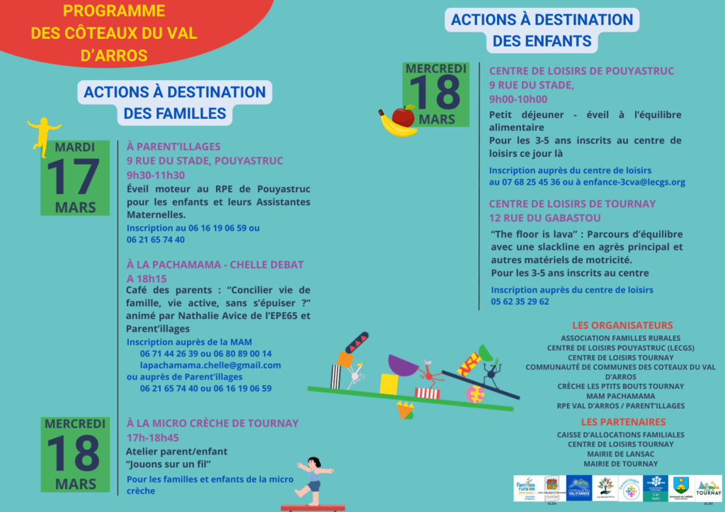 Du 𝟏𝟔 𝐚𝐮 𝟏𝟖 𝐦𝐚𝐫𝐬 participez sur le territoire à 𝐝𝐢𝐟𝐟𝐞́𝐫𝐞𝐧𝐭𝐞𝐬 𝐚𝐧𝐢𝐦𝐚𝐭𝐢𝐨𝐧𝐬 𝐚̀ 𝐝𝐞𝐬𝐭𝐢𝐧𝐚𝐭𝐢𝐨𝐧 𝐝𝐞𝐬 𝐞𝐧𝐟𝐚𝐧𝐭𝐬, 𝐝𝐞𝐬 𝐟𝐚𝐦𝐢𝐥𝐥𝐞𝐬 𝐨𝐮 𝐞𝐧𝐜𝐨𝐫𝐞 𝐝𝐞𝐬 𝐩𝐫𝐨𝐟𝐞𝐬𝐬𝐢𝐨𝐧𝐧𝐞𝐥𝐬 𝐝𝐞 𝐥𝐚 𝐩𝐞𝐭𝐢𝐭𝐞 𝐞𝐧𝐟𝐚𝐧𝐜𝐞, il y en a pour tous les goûts !
