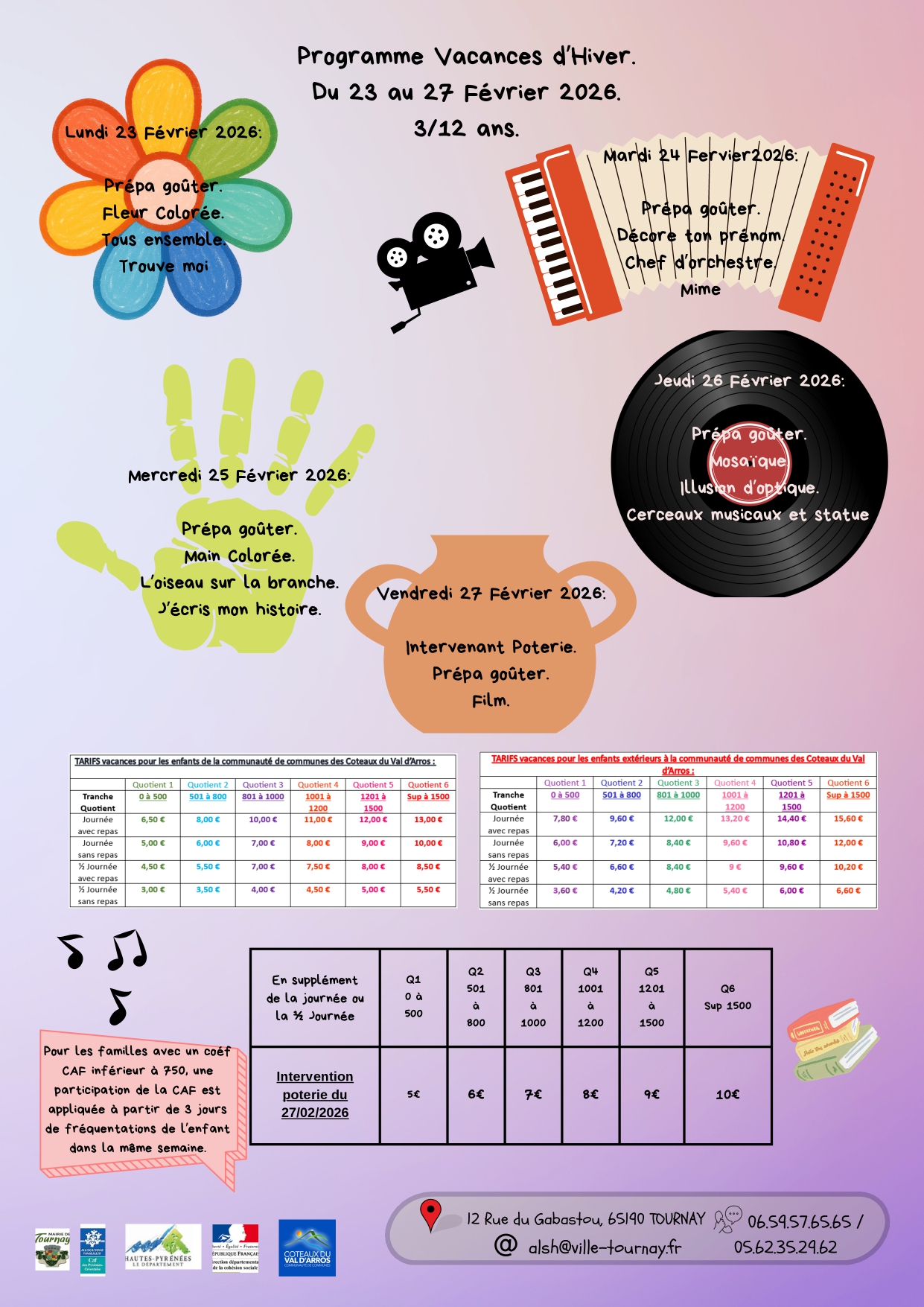 L’objectif au quotidien est le bien être de l’enfant et de favoriser son accès à l’éducation et à la culture et ceux pour tous les enfants ainsi que les enfants porteurs de handicap. A travers les différentes activités proposées, le respect du rythme de l’enfant est la priorité. Différentes activités sont proposées selon les différents temps d’Accueil.